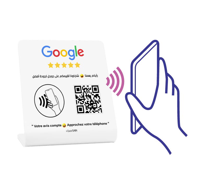 Le client approche son téléphone de la plaque : il accède directement à votre fiche Google Business